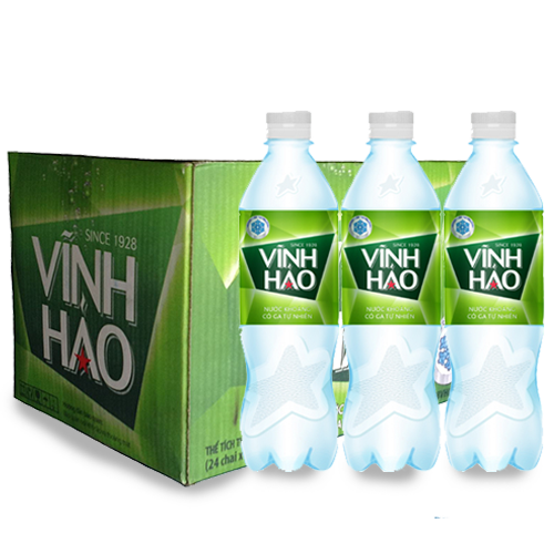 - Nước Uống Vĩnh Hảo khoáng có ga chai nhựa Pet 500ml ( vỏ chai được làm bằng chất liệu nhựa dày để đảm bảo hàm lượng khoáng chất và ga trong sản phẩm luôn được duy trình ở mức cam kết với khách hàng trên nhãn chai )