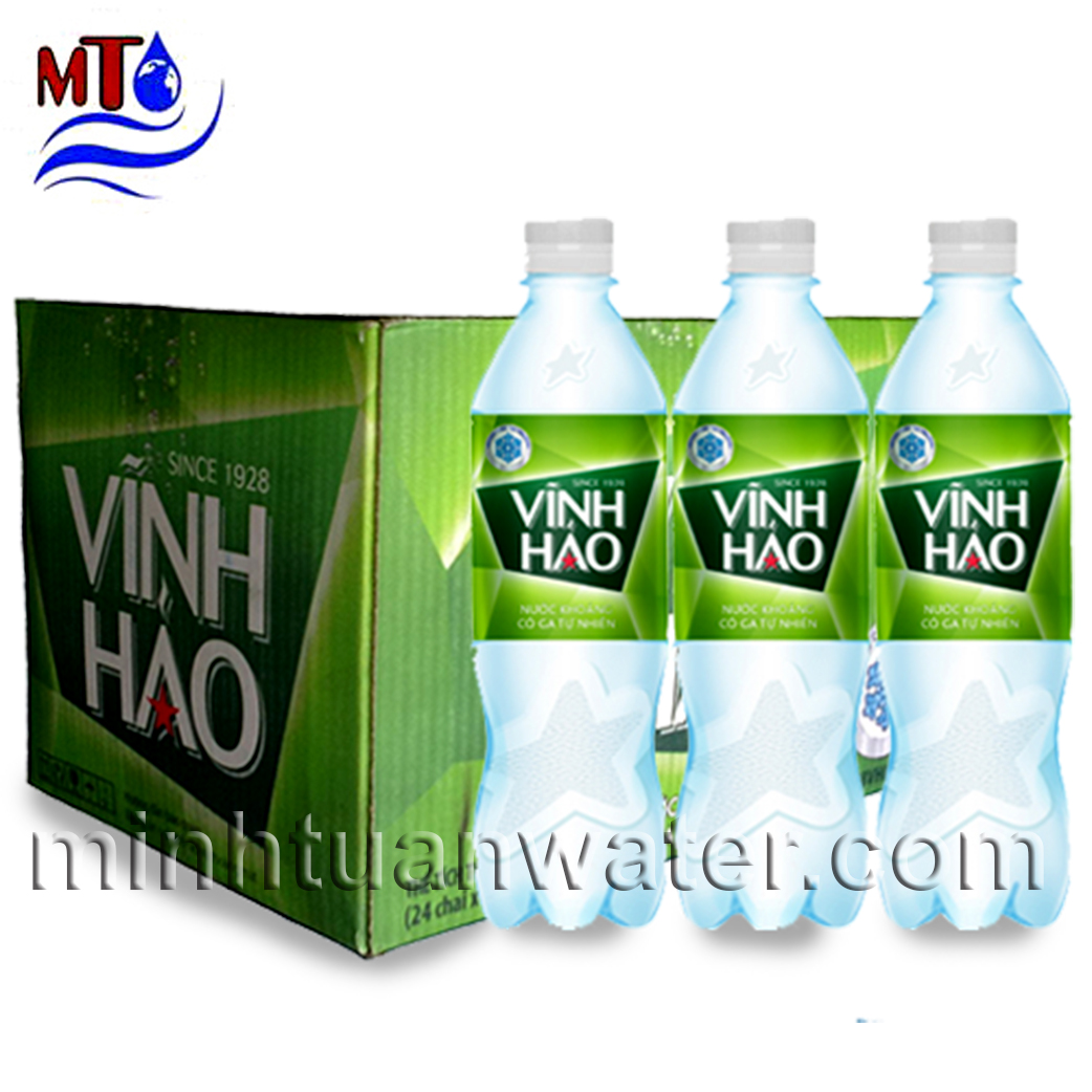 - Nước Uống Vĩnh Hảo khoáng có ga chai nhựa Pet 500ml ( vỏ chai được làm bằng chất liệu nhựa dày để đảm bảo hàm lượng khoáng chất và ga trong sản phẩm luôn được duy trình ở mức cam kết với khách hàng trên nhãn chai )